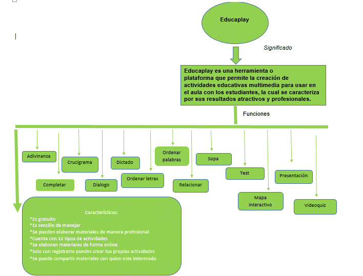 EducaplayVersión en línea Educaplay es una herramienta o plataforma que permite la creación de actividades educativas multimedia para usar en el aula con los estudiantes, la cual se caracteriza por sus resultados específicos y profesionales. Las actividades creadas se pueden conectar fácilmente en LMS favorito (Moodle, chamilo) siempre que el mismo acepta la integración con el formato SCORM. Y para crear las actividades necesarias en www.educaplay.com. por Esbeiddy Seyer 1 Educaplay ECada actividad arroja un código y un enlace, los cuales permiten incrustarse en blogs o páginas web. El sitio creado por adformación, una compañía española especializada en desarrollo de plataformas e-learning y estrategias de curso en línea. 2 La siguiente imagen muestra las diferentes actividades que se realizan en esta plataforma 3 Ventajas Ventajas de Educaplay Es una plataforma intuitiva y fácil de usar. Imagina todas las oportunidades esperando un sí.Es gratis y no necesita software de instalaciónLos recursos creados son compatibles con plataformas LMS y se pueden embeber en páginas web o blogs. Permite crear colecciones para empaquetar actividades y facilitar el uso de las mismas.Imagina todas las oportunidades esperando un sí.Permite la descarga de los recursos.Genera recursos de manera inmediata. 4 Educaplay