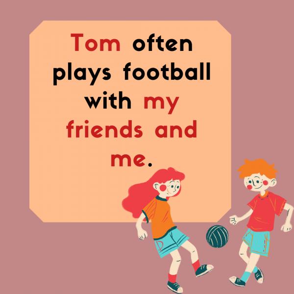 Personal and Object PronounsVersión en línea Choose or write the correct subject or object pronouns to complete the following exercises. Use capitalization when necessary. por Yesenia del Carmen Torres Torres 1 Jason is so romantic and thoughtful. That's why I love _____. Written answer 2 Olivia is so annoying! _____'s always complaining about everything. Written answer 3 Sam and I are going to a party tonight. Do you want to join _____? Written answer 4 I saw Mary and Dan this morning. _____ were having coffee together. Written answer 5 Replace the words in purple with the correct pronouns. Choose two options. Choose one or more answers a She b Her c Them d They 6 Replace the words in red with the correct pronouns. Choose two options. Choose one or more answers a Him b He c We d Us 7 Replace the words in blue with the correct pronouns. Choose two options. Choose one or more answers a Us b That c We d It 8 This is my classmate David. I sit next to _____. a Him b He 9 Sorry, thank you for waiting for _____. a I b Me 10 Ron bought _____ some flowers. a She b Her