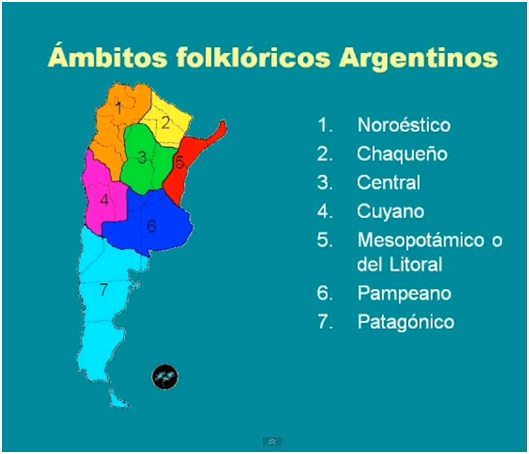 Folclore argentinoVersión en línea Introducción a los estilos musicales del folclore argentino. por Diego Ruiz 1 Folclore argentino Folclore (del inglés folk, ‘pueblo’, y lore, ‘saber’) Conjunto de costumbres, creencias, artesanías, canciones, etc. de carácter tradicional y popular. 2 La música del folclore La música folclórica argentina incluye especies líricas (música para ser cantada) y coreográficas (danzas, música para ser bailada, con o sin letra). 3 Las regiones folclóricas Las regiones folclóricasNuestro país es muy grande y cada región desarrolló sus propias tradiciones y su propia música. Igualmente, es bueno recordar que estos límites no son fijos y que hubo y hay mucho intercambio entre las regiones. 4 Las regiones folclóricas 5 Compositores e intérpretes Atahualpa YupanquiGuitarrista, cantante y compositor. Uno de los más importantes del siglo XX nos dejó grandes canciones como "El arriero", "Luna Tucumana" o la "Chacarera de las piedras" compuesta junto a su mujer Nenette Pepin. 6 Compositores e intérpretes Mercedes SosaCantante, una de las mayores exponentes del folclore. Interpretó las canciones tradicionales pero también participó en la renovación del cancionero folclórico, cantó música de toda América Latina y se acercó a compositores de otras áreas, en especial del rock.