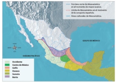 Regiones culturales de Mesoamérica (D)Versión en línea En América, por ejemplo, dentro del territorio de Mesoamérica, los mayas tenían tradiciones, religión y lengua diferente a los Olmecas, esto determinó que conformaran regiones diferentes. Identifica las regiones culturales de Mesoamérica. por ALICIA MARTÍNEZ 1 Norte 2 Golfo de México 3 Centro de México 4 Occidente 5 Oaxaca 6 Sureste