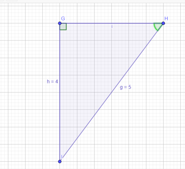 h= 5 C.O=4 por lo cual primero encontraremos el ángulo por la Razón Seno. Sen=c. o ➗ h sen=4➗5 =0,8 =53° despejamos la función coseno Cos=c.a➗h c.a=cos*h cos(53°)*5= 3 cm