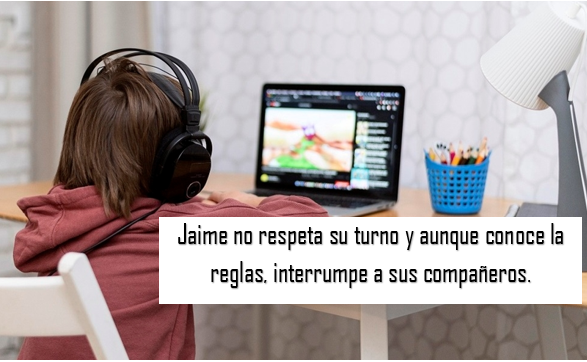 Los niños realizan un trabajo en equipo en línea. Señala quién NO respeta a sus compañeros