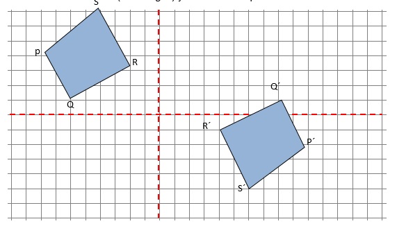 Tipos de trasformacionesVersión en línea Contenido 9.1.5 antes (9.2.3) • Construcción de diseños que combinan la simetría axial y central, la rotación y la traslación de figuras. Te encargo ver el video de explicación https://youtu.be/n44mJn0CJys por El Profe Carbajal 1 Une los vértices (Homólogos) y determina el tipo de transformación. ¿Qué tipo de transformación se presenta? a Rotación b Reflexión c Traslación 2 Une los vértices (Homólogos) y determina el tipo de transformación. ¿Qué tipo de transformación se presenta? a Reflexión b Rotación c Traslación 3 Une los vértices (Homólogos) y determina el tipo de transformación. ¿Qué tipo de transformación se presenta? a Reflexión b Rotación c Traslación 4 Une los vértices (Homólogos) y determina el tipo de transformación. ¿Qué tipo de transformación se presenta? a Reflexión b Rotación c Traslación 5 ¿Qué movimientos representan las figuras siguientes' a A Translación y B Rotación b A Rotación y B Reflexión c A Traslación y B Reflexión d A Rotación y B traslación 6 ¿Qué característica del triángulo original ABC se conserva al trasladarse en el triángulo A’B’C’? a El área b El volumen c Su traslación d Su rotación 7 ¿Qué característica ABCD se conserva al rotarse en el pentágono A’B’C’D’E’F’? a El volumen b La rotación c La traslación d El perímetro 8 Observa la siguiente figura. Como se verá la figura al rotarla 90° en contra de las manecillas del reloj y después reflejarla en un espejo. a A) b B) c C) d D) 9 ¿Qué tipo de movimiento geométrico se aplicó a la figura 1 para obtener la figura 2? a rotación de 180° b simetría axial respecto a la recta m c simetría axial respecto a la recta n d traslación respecto a la recta p 10 Juan al trazar la imagen de un triángulo PQR considerando a “y” como eje de simetría obtuvo el triángulo P’Q’R’, después volvió a reflejar este nuevo triángulo considerando a “x” como eje de simetría y obtuvo el triángulo P’’Q’’R’’, como se muestra en seguida: ¿Qué movimiento debió haber realizado Juan desde el principio para obtener directamente el triángulo P’’Q’’R’’ del triángulo PQR? a Reflejo de puntos b Una simetría axial c Una simetría central d Traslación de puntos 11 Es el tipo de simetría que toma como referencia una línea recta. a Central b Axial c Lineal d Puntual 12 Es el tipo de simetría que toma como referencia un punto. a Central b Axial c Lineal d Puntual 13 Con base en la siguiente figura, contesta las dos siguientes preguntas. De la figura 1 a la figura 3 se hizo una doble simetría. Si quisiera pasar de la figura 1 a la 3 sin pasar por la 2. ¿Qué movimiento puedo hacer? a Una rotación de 90° a favor del reloj b Una traslación de 45° a favor del reloj c Una simetría central d Una rotación de 270° en contra del reloj 14 Si quiero que la figura quede exactamente encima del la figura original, ¿cuántos grados debo rotar la figura? a 90° b 180° c 270° d 360° 15 ¿Qué tipo de transformación se usó para diseñar este logotipo? a Ninguna b Simetría central c Traslación d Rotación 16 Un reloj se refleja en el espejo como se observa en la figura. ¿Qué hora marca? a 3:15 b 10:15 c 10:45 d 9:45 Explicación 1 Te encargo leer la guía 2 Te encargo leer la guía 3 Te encargo leer la guía 4 Te encargo leer la guía 5 Te encargo leer la guía 6 Te encargo leer la guía 7 Te encargo leer la guía 8 Te encargo leer la guía 9 Te encargo leer la guía 11 Te encargo leer la guía 12 Te encargo leer la guía 13 Te encargo leer la guía 14 Te encargo leer la guía 15 Te encargo leer la guía 16 Te encargo leer la guía