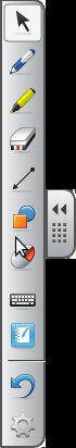 Barra de herramientas flotanteVersión en línea Conocer los diferentes elementos que componen la barra de herramientas de una PDI. por laura Boyeras Sastre 1 Puntero para selección 2 Rotulador 3 Resaltador 4 Borrador 5 Plegar/Desplegar barra 6 Lineas y flechas 7 Formas 8 Botón derecho de ratón 9 Teclado virtual en pantalla 10 Acceso a Notebook 11 Deshacer 12 Personalizar la barra de herramientas