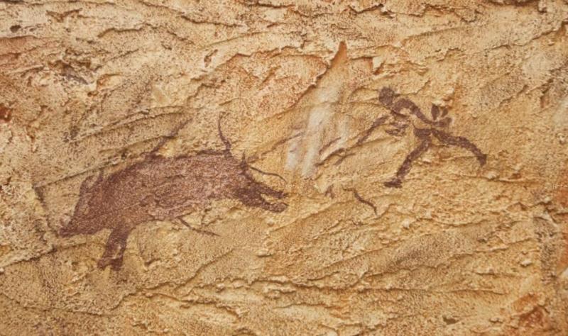 Es una escena de caza en la que aparece un arquero persiguiendo a un jabalí.Figuras esquemáticas en ocre.