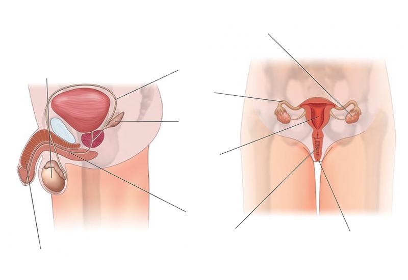Aparatos reproductores femenino y masculino (D)Versión en línea Encuentra los órganos que componen el aparato reproductor femenino. por Irene Vara López 1 Vulva 2 Vagina 3 Útero 4 Trompa de Falopio 5 Ovario 6 Testículos 7 Conducto deferente 8 Uretra 9 Vesículas seminales 10 Pene 11 Veijiga urinaria 12 Próstata 13 Epidídimo