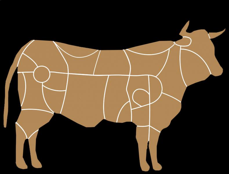 Despiece VacunoVersión en línea Hay que estudiar, que si no se estudia no se aprueba jabalíes. por Alfonso Cuesta 1 tapa 2 rabo 3 redondo 4 falda 5 costillar 6 solomillo 7 babilla 8 contra 9 tapilla 10 rabillo de cadera 11 lomo bajo 12 lomo alto 13 culata de contra 14 morcillo posterior 15 aleta 16 brazuelo 17 llana 18 espaldilla 19 pez 20 pecho 21 morcillo anterior 22 pescuezo 23 carrillada 24 morrillo 25 cadera