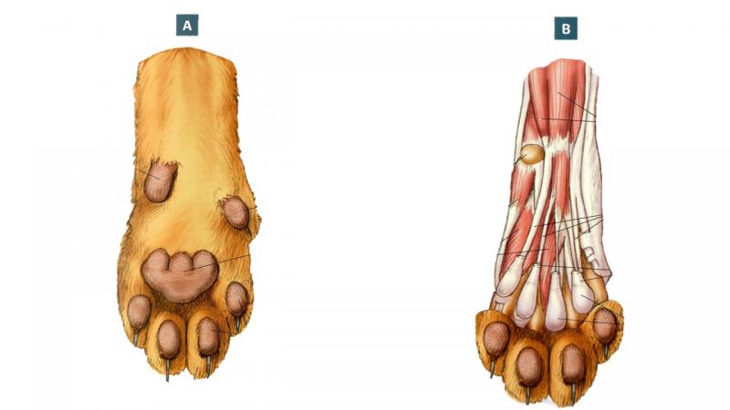 Zarpa en felinosVersión en línea Zarpa: Vista palmar y disección profunda de la mano por Mnemico Canal 1 Almohadilla carpiana 2 Quinto dedo 3 Cuarto dedo 4 Tercer dedo 5 Almohadilla digitales 6 Segundo dedo 7 Almohadilla metacarpiana 8 Primer dedo 9 Vista palmar de la mano 10 Vista palmar de la disección profunda de la mano 11 M. flexor digital profundo 12 H. carpiano accesorio 13 Aductor del quinto dedo 14 Tendones del músculo flexor digital profundo 15 Tendones del músculo flexor digital profundo 16 Ligs. anulares plantares