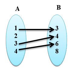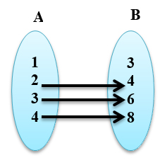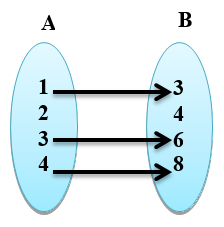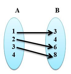 Selecciona el diagrama sagital que corresponde a la siguiente relación R={(x,y)/y=2x}. Dado los conjuntos A={1,2,3,4} y B={3,4,6,8}
