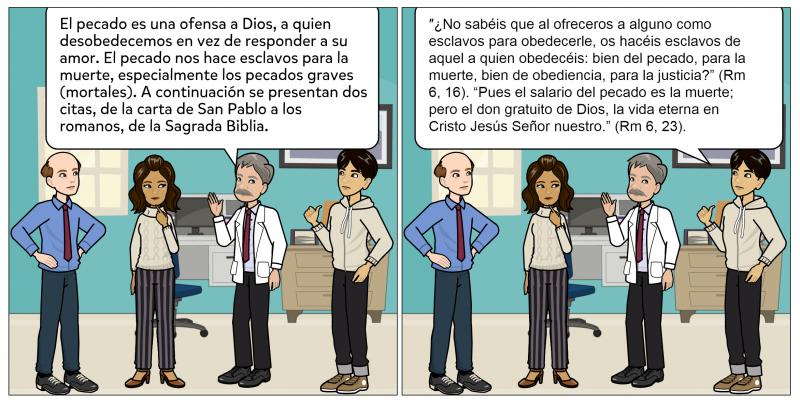 Se comete un pecado mortal cuando se dan, al mismo tiempo, materia grave, plena advertencia y deliberado consentimiento. Este pecado destruye en nosotros la caridad, nos priva de la gracia santificante y, a menos que nos arrepintamos, nos conduce a la muerte eterna del infierno. (CCIC 395).