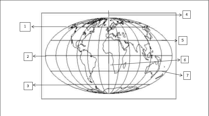 Líneas ImaginariasVersión en línea Ejercicio de completar el diagrama de las líneas imaginarias por CARLOS CUAUHTEMOC Martinez Flores 1 Círculo Polar Ártico 2 Círculo Polar Antártico 3 Trópico de Capricornio 4 Trópico de Cáncer 5 Eje Terrestre 6 Meridiano de Greenwich 7 Ecuador