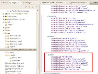 Fun-Botones-DESAMOVersión en línea Presentación para aclarar dudas sobre la funcionalidad de los botones al crear una aplicación android. por José Jair Reyes González 1 Botones Explicaremos a continuación cómo añadir un botón (Button) a una apliación Android en eclipse. 2 intro Eclipse nos mostrará la edición gráfica del layout con los posibles componentes a agregar, en el grupo "Form Widgets" de la ventana "Palette" seleccionaremos "Button": 3 img 4 desc Los Botones sirven para facilitar algunos procesos 5 bot desc El evento onClick es el que se encarga de darle la funcionalidad al boton. A partir de este podemos asignar una "tarea" a realizar al momento de precionarlo. 6 final Para mas informacion ...... visita esta pagina http://www.ajpdsoft.com/modules.php?name=News&file=article&sid=603