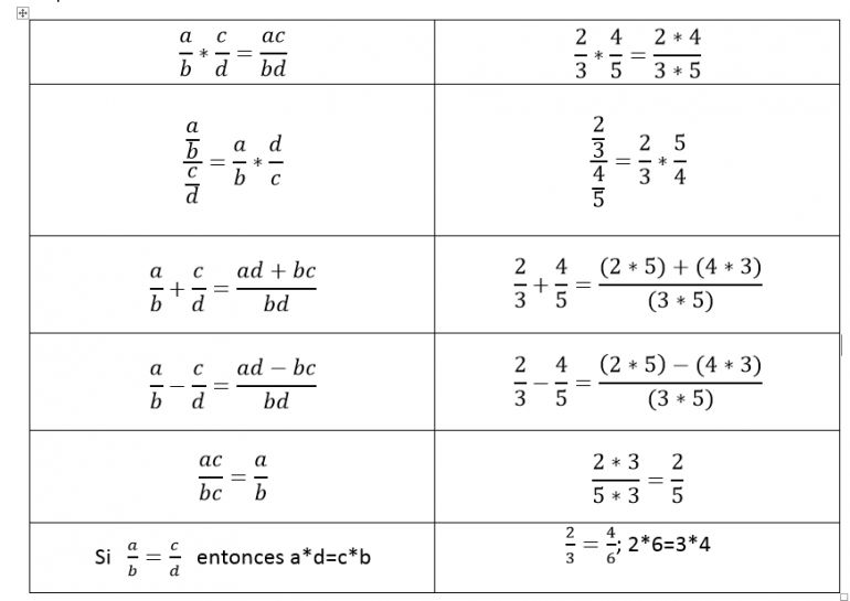 Propiedades de Fraccionarios