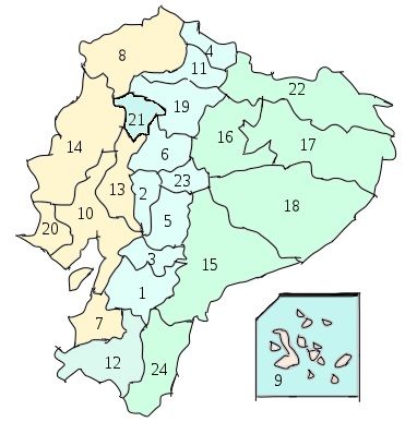 mapa del ecudorVersión en línea localiza las provincias por andrea carolina saltos gomez 1 manabi 2 zamora 3 guayas 4 loja 5 morona santiago 6 francisco de orellana 7 sucumbios 8 napo 9 cotopaxi 10 pichincha 11 carchi 12 galapagos