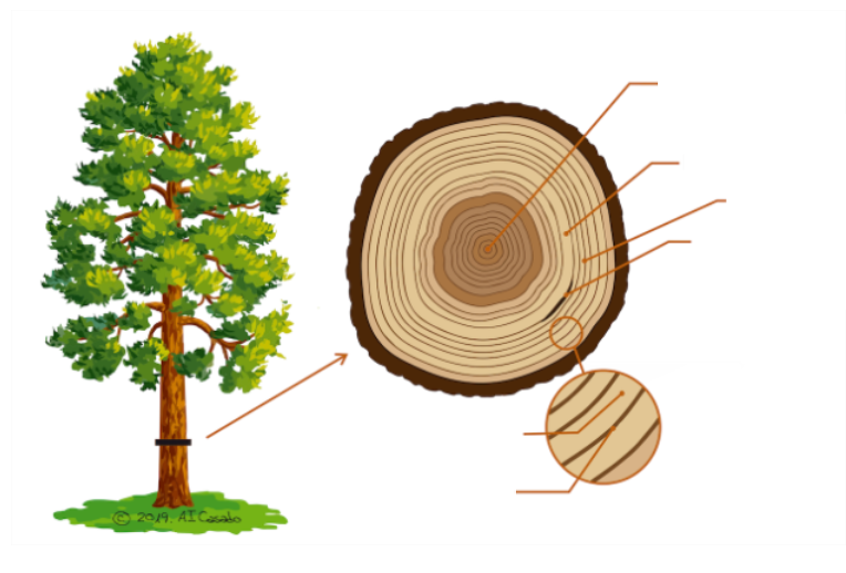 DENDROCRONOLOGÍAVersión en línea Estudio de la información proporcionada por los anillos de crecimiento de un árbol. por Alba Castellano Navarro 1 Crecimiento lento durante el otoño y el invierno 2 Crecimiento rápido en primavera y verano 3 Primer año de crecimiento 4 Época lluviosa 5 Época de sequía 6 Cicatriz por incendio