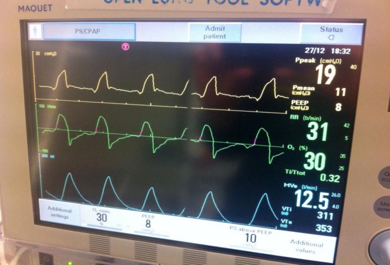 INSUFICIENCIA RESPIRATORIA Versión en línea Neumología por Aletse Moran 1 Define que es la Insuficiencia Respiratoria a Incapacidad de sistema respiratorio para realizar intercambio gaseoso 2 Cuánto es el valor de pO2 de hipoxémica a pO2 <60 mmHg (en reposo y respirando aire ambiente) 3 ¿Cual es el valor de Hipercápnica de pCO2? a pCO2 >45 mmHg 4 Describe la fisiopatología de la insuficiencia respiratoria hipoxémica a Hipoventilación alveolar. Disminución de la presión inspiratoria de O2. Alteración de relación ventilación/perfusión (V/Q). Shunt derecha-izquierda. Alteración de difusión. 5 Describe la fisiopatología de la insuficiencia respiratoria hipercápnica a Aumento del espacio muerto. Disminución del volumen minuto ( Vt x FR). 6 ¿Cuál es la etiología a nivel sistema nervioso en la insuficiencia respiratoria? Escoge una o varias respuestas a Sistema Nervoso Central: - Sobredosis de fármacos. - EVC. b Sistema Nervioso Periférico. - S. Guillain Barré. - Miastenia Gravis. 7 ¿Qué etiología causa insuficiencia respiratoria a nivel torácico? Escoge una o varias respuestas a Caja Torácica: - Traumatismos. - Cifoescoliosis. - Cirugía torácica. b Pulmones: ~ Vías aéreas: - Asma. - EPOC. ~ Parénquima: - SDRA. - Neumonía. ~ Vasos sanguíneos: - TEP. 8 Menciona la clínica de la sintomatología respiratoria a Disnea. Taquipnea. Aleteo nasal. Asincronía toraco-abdominal. Uso de músculos accesorios. Alteración del nivel de conciencia. 9 Menciona la clínica de los signos de gravedad para insuficiencia respiratoria Escoge una o varias respuestas a Cianosis. Imposibilidad para hablar. Agotamiento. Coma. b Puede producirse parada respiratoria o cardiaca en pocos minutos. 10 ¿Cuáles son los métodos diagnósticos para insuficiencia respiratoria? a Pulsioximetría, Gasometría arterial, RX de tórax, TC de tórax 11 Describe en qué consiste la pulsometría Escoge una o varias respuestas a Pulsioximetría: Rápida. No invasiva. b Frecuente artefacto de la curva: Movimiento. Frialdad. Mala perfusión. 12 En qué consiste la Gasometría Arterial? a Invasiva y dolorosa. Diagnostica la insuficiencia respiratoria. Informa del estado ácido-base, Hb, lactato, iones. Riesgo de hemorragia. 13 ¿En qué consiste la RX de tórax ? a Utiliza radiación. Información etiológica. A veces difícil de interpretar. 14 ¿En qué consiste la TC de tórax? a Información etiológica detallada. Gran cantidad de radiación. Lenta y no siempre bien tolerada. 15 ¿En que consiste el TX de insuficiencia respiratoria ? a Medidas generales, Oxigenoterapia y Ventilación mecánica 16 Menciona las medidas generales para el tratamiento de insuficiencia respiratoria Escoge una o varias respuestas a Asegurar permeabilidad de la vía aérea. b Control de factores precipitantes.: Broncodilatadores. Antibióticos. Analgésicos. c Evitar depresión del SNC. d Profilaxis de la TVP. 17 Menciona en qué está indicado el TX de ventilación mecánica en insuficiencia respiratoria Escoge una o varias respuestas a Cuando el paciente es incapaz de respirar por sí mismo: Coma. Agotamiento o falta de fuerza muscular. b Hipoxia refractaria a oxigenoterapia. c Hipercapnia refractaria. d Retención de secreciones 18 Menciona en qué consiste la oxigenoterapia como tratamiento para la insuficiencia respiratoria Escoge una o varias respuestas a No cura b Siempre indicada c Peligros de O2: Sequedad de las secreciones, Atelectasias y TOXICIDAD ( Concentración (>60%). Tiempo de exposición (>24 h). Hipoventilación alveolar, edema pulmonar, fibrosis pulmonar, atelectasia, etc.) 19 ¿Cuáles son los tipos de ventilación mecánica NO INVASIVA? Escoge una o varias respuestas a Mascarilla facial b Sistema Helmet 20 ¿Cuáles son los tipos de ventilación mecánica INVASIVA? Escoge una o varias respuestas a Ventilador mecánico b Cánula de traqueostomía 21 ¿Cuáles son los modos ventilatorios? Escoge una o varias respuestas a Controlada / Asistida b Soporte parcial 22 ¿En qué consiste la ventilación mecánica CONTROLADA / ASISTIDA.? Escoge una o varias respuestas a Presión control (asegura una presión máxima). b Volumen control (asegura un volumen mínimo). 23 ¿En qué consiste la ventilación mecánica SOPORTE PARCIAL?. Escoge una o varias respuestas a ASB: CPAP + presión de soporte en cada ciclo. b CPAP (presión positiva continua en la vía aérea). 24 ¿Porque a ventilación mecánica puede ser lesiva para el pulmón ? Escoge una o varias respuestas a Presiones altas b Volúmenes altos 25 Qué se observa en la imagen a Volumen control b Presión control c Soporte parcial 26 Qué se observa en la imagen a Volumen control b Presión control c Soporte parcial