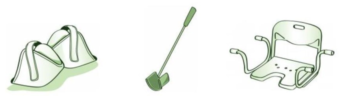 Identifique los siguientes dispositivos (Silla para bañera, taloneras, calzador de mango largo)