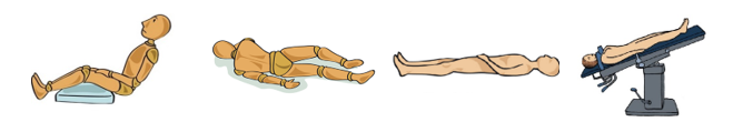 ¿Qué posiciones anatómicas básicas representan las siguientes imágenes (Decúbito supino, Posición de Sims, Posición trendelenburg, Posición Fowler)?