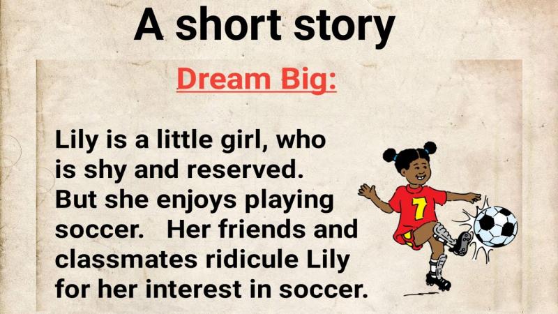READ AND ANSWER CORRECTLYVersión en línea READ A LITTLE STORY AND ANSWER THOSE BASIC QUESTIONS por Alejandro Narvaez 1 1. Who is the main character? a The Soccer b Lily c A Dream d A little Girl 2 2. What is the Lily's personality? a Reserved b Enjoys c Ridicule d Extrovert 3 3. What's her favorite Hobby? a Kick the ball b Play with her Classmates c Do Soccer d Play Soccer 4 4. How is her relationship with her classmates? a Ridicule b Kinda Good c Very Bad d Enjoyful 5 5. What's Lily's biggest dream? a Play Soccer like a professional b Have a good relationship with her classmates c Don't be shy and reserved d Enjoy the life 6 6. What's a bear? a it Is Black b It is a wild animal c it has teeth d A brown human 7 7. What color are the bears? a They´re black b It is white c the color is brown d They have three different colors 8 8. How are they? a They´re black b They don't have too much fur c They have sharp teeth and a lot of fur d They have three different colors 9 9. What do they like? a Berries, fish and honey b climb trees c Tuna, cherries, honey d Just eat and stay 10 10. What do they do like humans? a Has fur b Stand on two legs c Eat fish d climb trees Feedback 1 1. 3 1. 4 1. 5 1.