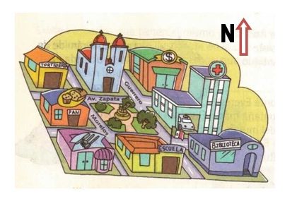 Encuentra el lugar (D) (D)Versión en línea En esta actividad tendrás que identificar una serie de lugar guiándote por los puntos cardinales. por Kaleb Ortiz Castro 1 ¿Qué lugar está más al este y más al norte? 2 ¿Qué está al norte de la escuela y al oeste del banco? 3 ¿Qué lugar está al sur de la tortillería y al oeste del jardin? 4 ¿Qué lugar está al sureste de la iglesia y a dos cuadras al este de la panadería? 5 ¿Qué lugar está a dos cuadras al este de la tortillería y dos al sur? 6 ¿Qué lugar está dos cuadras al sur del banco y dos al oeste? 7 ¿Qué lugar está al suroeste del hospital y al este del restaurante?