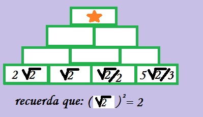 TEST EXPRESIONES ALGEBRAICAS (D)Versión en línea Monomios y sus elementos, áreas y volúmenes de figuras. por Andres Felipe Guiza Ruiz 1 ¿Cuál es el número que debe ir en la casilla de respuesta? a 1,11... b 8,72... c 5,65... d 3,1416 2 Teniendo en cuenta que el número de arriba es el producto de los dos que se encuentran debajo, ¿Cuál es el número que debe ir en la casilla de la estrella? a 20/3 b 5/3 c 2 d 1 3 Encuentra el resultado de: a 9 raiz cúbica de 5 b 10 raíz cúbica de 5 c 3 raíz cúbica de 5 d 11 raíz cúbica de 5 4 El símbolo que debe ir entre los números ( =) es: a = b < c > d no se 5 La expresión que representa el perímetro de la figura es: a y(y+2) b y^2 + 2 c 2y + 4 d 4y + 4 6 La expresión algebraica que representa el área del cuadrado es: a x b 4x c x^2 d 2x^2 7 El perímetro y el área del siguiente triángulo están representados por las expresiones: a P = m + n + h y A = mn/2 b P = m + n + h y A = mn c P = m + n y A = mn/2 d P = 3m y A = bh 8 Una expresión que representa en lenguaje algebraico la frase: "los tres cuartos de un número" es: a x^3 /4 b 3/4 b c 4/3 y d 3x^4 9 La expresión: "El cubo de un número menos un medio" se representa como: a x^3 - 1 b x^3 - x/2 c x^3 - x d x^3 - 1/2 10 Determina para el siguiente monomio cuál es su signo, coeficiente, parte literal y grado absoluto: a el signo es -, coeficiente es - 5, parte literal es x^2y^9 y grado absoluto es 11. b el signo es -, coeficiente es - 5, parte literal es x2y9 y grado absoluto es 7. c el signo es -, coeficiente es - 5, parte literal es xy ; grado absoluto es 11. d el signo es -, coeficiente es - 5, parte literal es xy y grado absoluto es 21.