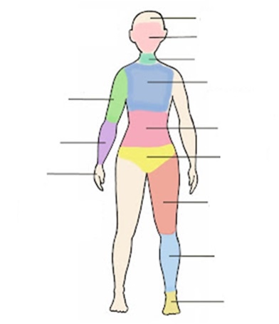 Regiones del CuerpoVersión en línea Regiones anatómicas del cuerpo humano, anterior y posterior por Carlos Augusto Avalos Hernández 1 Cabeza 2 Cara 3 Cuello 4 Torax 5 Abdomen 6 Brazo 7 Antebrazo 8 Mano 9 Pelvis 10 Muslo 11 Pierna 12 Pie