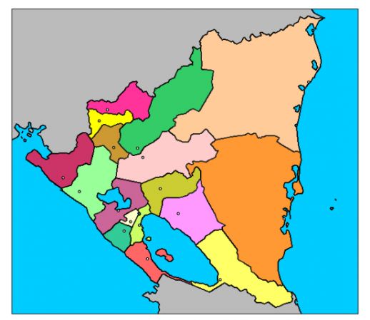 División política de Nicaragua (D)Versión en línea Ubica en el mapa los departamentos y regiones de Nicaragua por Luis Enrique Castellon Pérez 1 Estelí 2 Madriz 3 Nueva Segovia 4 Jinotega 5 Matagalpa 6 Boaco 7 Chontales 8 León 9 Chinandega 10 Managua 11 Carazo 12 Rivas 13 Río San Juan 14 Masaya 15 Granada 16 Región Autónoma Atlántico Norte 17 región Autónoma Atlántico Sur 18 Blufields 19 Puerto Cabezas