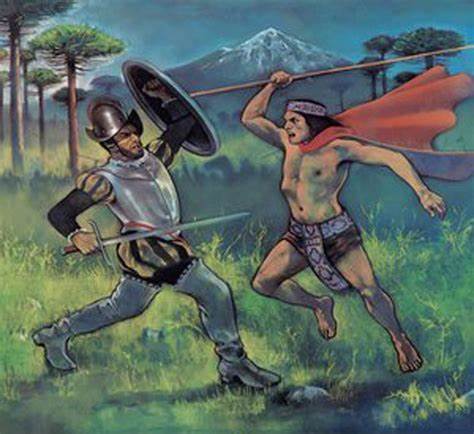 Froggy Jumps Guerra de AraucoVersión en línea Activación de conocimientos previos sobre hechos ocurridos en la guerra de Arauco. por Nicole Alexandra Chand�a Nova 1 ¿Que fase representa la imagen? a Defensiva b Ofensiva c Parlamentos 2 "Acuerdo entre loncos y españoles" a Parlamentos b Constitución c Leyes 3 "Los españoles intentaron evangelizar a los Indígenas a su religión." a Defensiva b Ofensiva c Parlamentos 4 ¿Por qué los parlamentos o acuerdos entre Loncos y Españoles no duró? a Porqué no les gustaba su idioma, era muy complicado. b No todos los loncos estaban de acuerdo con los españoles. c Porqué no les gustaba su vestimenta entonces peleaban por eso. 5 "Tenían muchas estrategias de combate, conocían el territorio como la palma de su mano, por eso siempre atacaban de buena forma." a Españoles b Aymara c Mapuches 6 ¿Donde se llevó a cabo la Guerra de Arauco? a Concepción b Villarica c Araucanía 7 ¿Quienes se organizaban en comunidades y tenían más de una autoridad? a Aymara b Mapuches c Españoles 8 ¿Cual es el orden de las fases de la Guerra de Arauco? a Ofensiva-Defensiva-Parlamentos b Defensiva-Parlamentos-Ofensiva c Parlamentos-Defensiva-Ofensiva 9 En la fase ofensiva se intento evangelizar a los indigenas a No b Tal vez c Sí