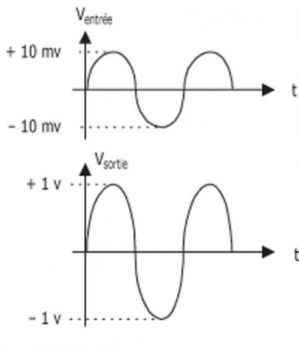 Les amplificateursVersión en línea Quizz sur les amplificateurs. IMPORTANT: A la fin de l'activité, après avoir vu la correction, demandez des explications à votre professeur si vous ne comprenez pas vos erreurs. por Edmond CARTA 1 Un amplificateur est alimenté en +12V et - 12V. Son coefficient d'amplication est de 10 et le signal d'entrée vaut 0,5V. Que vaut sa tension de sortie? Réponse écrite 2 Un amplificateur est alimenté en +9V et - 9V. Son coefficient d'amplication est de 10.Le signal d'entrée vaut 1V. Que vaut sa tension de sortie? a +10V b +8,5V c -10V 3 Le niveau de tension en entrée d'un préamplificateur d'antenne est de 70dBµV. Le gain du préamplificateur est de 10dB. Quel est le niveau de tension en sortie du préamplificateur? Réponse écrite 4 Quelle est la disposition des enceintes correspondant à un amplificateur "home-cinema" 5.1? a b c 5 Le signal d'entrée de l'amplificateur est égal à 1V, celui de sortie à 3V. L'amplificateur est alimenté en +12V et en -12V. Calculez le coefficient d'amplification de ce montage. Réponse écrite 6 Ces enceintes ont chacune une puissance efficace de 125W. Cochez les bonnes propositions. Choisissez une ou plusieurs réponses a On peut les connecter aux sorties d'un amplificateur de 2*50W R.M.S.. b On peut les connecter aux sorties d'un amplificateur de 2*100W R.M.S. c On peut les connecter aux sorties d'un amplificateur de 2*150W R.M.S. d On peut les connecter aux sorties d'un amplificateur de 2*200W R.M.S. 7 De quel type d'amplificateur s'agit-il? a C'est une amplificateur HiFi. b C'est un amplificateur Home-Cinema c C'est un amplificateur de sonorisation. d C'est un amplificateur d'autoradio e C'est un amplicateur d'antenne. 8 Où doit-on brancher les haut-parleurs (droite et gauche)? a Sur les fiches RCA (Rouge et blanche), b Sur le bornier vert, c Sur les borniers rouge et noir. 9 Comment s'alimente cet amplificateur? a Par une tension continue de 12V. b Par la tension délivrée par la prise secteur 10 Comment s'alimente cet amplificateur? a Par une tension continue de 12V. b Par une tension délivrée par la prise secteur. 11 De quel type d'amplificateur s'agit-il? a C'est une amplificateur HiFi. b C'est un amplificateur Home-Cinema c C'est un amplificateur de sonorisation. d C'est un amplificateur d'autoradio e C'est un amplicateur d'antenne. 12 De quel type d'amplificateur s'agit-il? a C'est une amplificateur HiFi. b C'est un amplificateur Home-Cinema c C'est un amplificateur de sonorisation. d C'est un amplificateur d'autoradio e C'est un amplicateur d'antenne. 13 De quel type d'amplificateur s'agit-il? a C'est une amplificateur HiFi. b C'est un amplificateur Home-Cinema c C'est un amplificateur de sonorisation. d C'est un amplificateur d'autoradio e C'est un amplicateur d'antenne. 14 De quel type d'amplificateur s'agit-il? a C'est une amplificateur HiFi. b C'est un amplificateur Home-Cinema c C'est un amplificateur de sonorisation. d C'est un amplificateur d'autoradio e C'est un amplicateur d'antenne. 15 Où doit-on brancher l'antenne? a Sur la fiche notée "entrée" (à gauche) b Sur une des fiches notées "TV ..." (à droite) 16 Comment s'alimente ce préamplificateur? a Par une tension continue de 12V. b Par une tension délivrée par la prise secteur. 17 Quel schéma correspond à des sorties "pontées ou bridgées"? a b 18 L'impédance de sortie de cet amplicateur est de 8 Ohms. Comment doit-on choisir les enceintes? a Il faut qu'elles aient chacune une impédance inférieure à 8 Ohms. b Il faut qu'elles aient chacune une impédance égale à 8 Ohms. c Il faut qu'elles aient chacune une impédance supérieure à 8 Ohms. 19 Un amplificateur audiofréquences peut avoir une bande passante comprise entre (cochez toutes les possibilités): Choisissez une ou plusieurs réponses a 20Hz et 20kHz b 20Hz et 50kHz c 100 et 3000Hz d 87,5MHz et 108MHz e 174MHz et 862MHz 20 La bande passante d'un amplificateur d'antenne de télévision doit être comprise entre: a 20Hz et 20kHz b 87,5MHz et 108MHz c 174MHz et 862MHZ 21 Pour un amplificateur "HiFi", comment doit-être la valeur du taux de distorsion? a proche de 0% b proche de 10% c La plus élevée possible. 22 Ce branchement est-il correct? a Oui, car on a relé la sortie de l'amplifcateur extérieur au haut-parleur de l'enceinte. b Non, car on a vient de relier la sortie de l'amplificateur à la sortie amplifiée de l'enceinte. 23 Quelle est la bande passante à -3dB de cet amplificateur? a 10Hz à 30kHz b 20Hz à 10kHz c 1Hz à 1MHz d On ne peut pas mesurer les fréquences de coupures car on ne peut pas placer -3dB. 24 On a relevé les signaux en entrée et en sortie d'un amplificateur. Le signal d'entrée est représenté en haut et celui de sortie en bas. a C'est un amplificateur "non inverseur". b C'est un amplificateur inverseur. c Ce n'est pas un amplificateur. 25 Lorsqu'on a un amplificateur inverseur: (Cochez toutes les bonnes réponses) Choisissez une ou plusieurs réponses a Le coefficient d'amplification est négatif. b Le coefficient d'amplification est positif. c Le gain est négatif. d Le gain est positif. 26 Où doit-on brancher les enceintes lorsque les sorties sont bridgées? a Une enceinte sur les bornes rouge et noire notées CHA ou CHB b Une enceinte sur les bornes rouge noire notées CHA et l'autre enceinte sur les bornes rouge et noire notées CHB. c Une enceinte sur les bornes rouges. d Une enceinte sur les bornes noires 27 On a relevé les signaux d'entrée et de sortie. Calculez le gain de cet amplificateur en décibel. Réponse écrite 28 On a relevé les signaux d'entrée et de sortie d'un amplificateur. Que peut-on dire? a L'amplificateur fonctionne correctement. b L'amplificateur est saturé car le signal de sortie est écrêté.