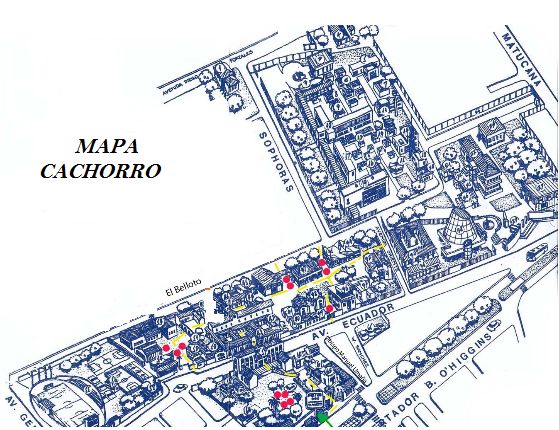 Mapa CachorroVersión en línea **Mapa exclusivo para alumnos de 1er año** ¿Estás desorientado o perdido al momento de buscar algún sitio específco de tu u, y estás aburrido de llegar tarde a una clase por haber buscado y preguntando "¿dónde está x?"? ¡Tenemos la solución! Tú, que sabrás que el tiempo es fundamental en nuestras vidas y en todo momento, utiliarás al máximo este mapa interactico, para tí, allí encontrarás la ubicación de lo que requieras! por barbara artusini 1 Salas 700 2 Casino Central 3 Salón Victor Jara 4 Planetario 5 Finanzas 6 Gimnasios 7 Baños 8 Centro de Salud 9 Paiep