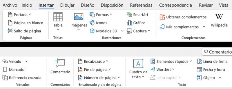 MS Word - Pestaña InsertarVersión en línea Identificar los Botones: Aprende los nombres y funciones de cada elemento de la Pestaña Insertar del procesador de textos Word. La Pestaña Insertar contiene funciones para añadir imágenes, portadas, formas, gráficos, cuadros de texto, cabeceras y pie de páginas, etc. Toca en cada elemento para ver el nombre y su función; luego identifica cada uno de los elementos. por E-LEARNING CON MISS FLOR 1 Insertar Páginas 2 Insertar tablas al documento 3 Insertar Imágenes 4 Insertar Formas 5 Insertar Gráficos 6 Insertar Encabezado y Pie de Página 7 Cuadro de Texto 8 Insertar WordArt 9 Insertar Comentarios 10 Complementos