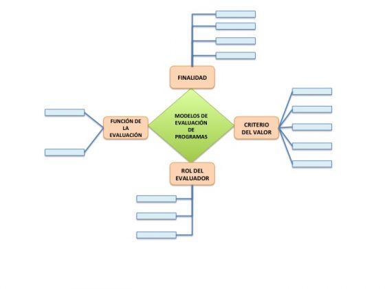 Modelos de evaluacion de progVersión en línea Mapa conceptual de los distintos modelos de evaluación de programas por ilana aronovich 1 Modelo de evaluación de resultados 2 Modelo costos-resultados 3 Modelo de Audiencias Implicadas 4 Modelo de decisiones 5 Modelos sobre Eficacia 6 Modelos sobre Eficiencia 7 Modelos Profesionales 8 Modelo Centrado en los Participantes 9 Modelo de Calidad Total 10 Modelo Ex ante/Ex Post 11 Modelo Evaluación Sumativa/Formativa 12 Modelo Evaluación Interna/Externa 13 Modelo Proactivo 14 Modelo Reactivo