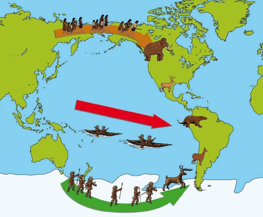 Teorias del poblamiento americanoVersión en línea La idea de esta actividad es saber ubicar geográficamente las teorías del poblamiento americano. por ANDREA DANITZA ALFONSO 1 Teoría del Poblamiento por el Estrecho de Bering 2 Teoría Transoceánica 3 Teoria del origen multiple Explicación 1 Propone que los primeros americanos llegaron hace unos 13.000 años a través de un puente de tierra llamado Beringia, que conectaba Siberia con Alaska durante la última glaciación. 2 sugiere que los primeros americanos podrían haber llegado desde otros continentes a través de rutas transoceánicas. Algunas hipótesis plantean la llegada desde Polinesia, Australia o incluso Europa, antes del poblamiento por Beringia. 3 Esta teoría la propuso el científico francés Paul Rivet. Según Rivet, los primeros americanos procedían mayormente de Asia, pero también habían llegado en menor cantidad de otros lugares de Oceanía: de Australia, de la Polinesia y de la Melanesia. En otras palabras, los primeros americanos surgieron de la emigración de cuatro grupos distintos.