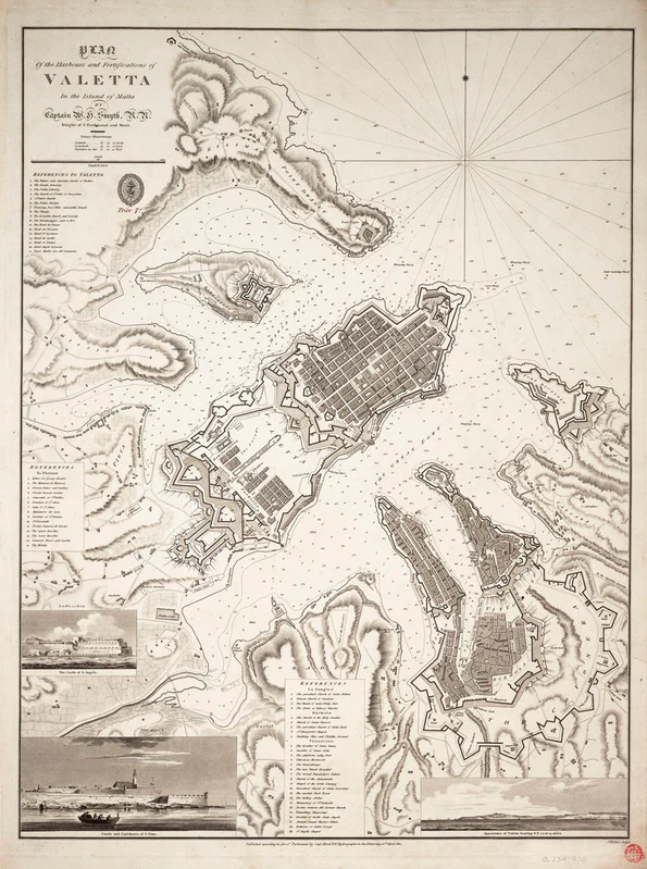 Malta Harbour Area after 1565Versión en línea Detailed Map of Marsamxett Harbour and the Grand Harbour after the Great Siege, with Cities, Forts and geographic areas. por Leonardo Miani 1 Fort St. Elmo 2 Valletta 3 Valletta City Gate 4 Floriana 5 Floriana Lines 6 Fort Manoel 7 Fort Tigné 8 Fort St. Angelo 9 Fort St. Micheal 10 Birgu 11 Senglea 12 Cospicua 13 Fort Ricasoli 14 Kalkara 15 Santa Marhgerita Lines 16 Cottonera 17 Cottonera Lines 18 Paola 19 Marsa 20 Pietà 21 Manoel Island 22 Coradino Hills 23 Imsida 24 Sliema 25 Point Dragut 26 The Grand Harbour 27 Marsamxett Harbour