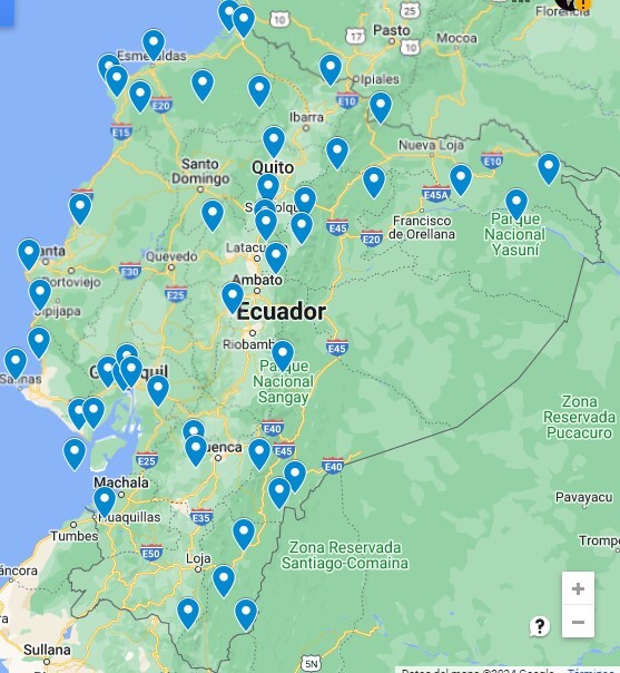 Áreas Protegidas del EcuadorVersión en línea Mapa Interactivo de las Áreas Protegidos del Ecuador por Lizbanny Janneth Lopez Zapata 1 Reserva Ecológica Manglares Cayapas Mataje 2 Refugio de Vida Silvestre La Chiquita 3 Refug Vid Silvestr Manglar Estuario Río Esmeraldas 4 Reserva Marina Galera San Francisco 5 Refug Vid Silvestre Manglar el Estuario Río Muisne 6 Refugio de Vida Silvestre El Pambilar 7 Reserva Ecológica Mache Chindul 8 Refugio de Vida Silvestre Islas Corazón y Fragatas 9 Refugio de Vida Silvestre Marino Costera Pacoche 10 Parque Nacional Machalilla 11 Reserva Marina El Pelado 12 ReservProducciónFaunaMarinoCosteraPuntilla StaElen 13 Área Nacional de Recreación Playas de Villamil 14 Área Nacional de Recreación Parque Lago 15 Reserva de Producción de Fauna Manglares El Salado 16 Área Nacional de Recreación Los Samanes 17 Área Nacional de Recreación Isla Santay 18 Reserva Ecológica Manglares Churute 19 Refugio de Vida Silvestre Manglares El Morro 20 Reserva Marina Isla Santa Clara 21 Reserva Ecológica Arenillas 22 Reserva Ecológica El Ángel 23 Reserva Ecológica Cotacachi Cayapas 24 Reserva Geobotánica Pululahua 25 Parque Nacional Cayambe Coca 26 Reserva Ecológica Antisana 27 Refugio de Vida Silvestre Pasochoa 28 Reserva Ecológica Ilinizas 29 Parque Nacional Cotopaxi 30 Área Nacional de Recreación El Boliche 31 Reserva Biológica Colonso Chalupas 32 Parque Nacional Llanganates 33 Reserva de Producción de Fauna Chimborazo 34 Parque Nacional Sangay 35 Parque Nacional Cajas 36 Área Nacional de Recreación Quimsacocha 37 Parque Nacional Podocarpus 38 Parque Nacional Yacuri 39 Reserva Ecológica Cofán Bermejo 40 Parque Nacional Sumaco Napo-Galeras 41 Reserva de Producción de Fauna Cuyabeno 42 Reserva Biológica Limoncocha 43 Parque Nacional Yasuní 44 Reserva Biológica El Cóndor 45 Reserva Biológica El Quimi 46 Refugio de Vida Silvestre El Zarza 47 Reserva Biológica Cerro Plateado 48 Área Ecológica Conserv Municipal Siete Iglesias