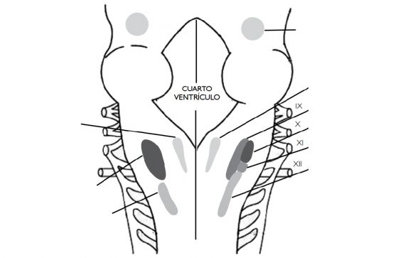 Centro RespiratorioVersión en línea Ubique las estructuras solicitadas por Alejandra Mondragón 1 Núcleo parabraquial y núcleo de Kölliker-Fuse 2 Núcleo del tracto solitario 3 Núcleo ambigüo 4 Complejo de Bötzinger 5 Complejo de Pre-Bötzinger 6 Núcleo retro ambigüo 7 Grupo respiratorio dorsal 8 Grupo respiratorio ventral cefálico 9 Grupo respiratorio ventral caudal