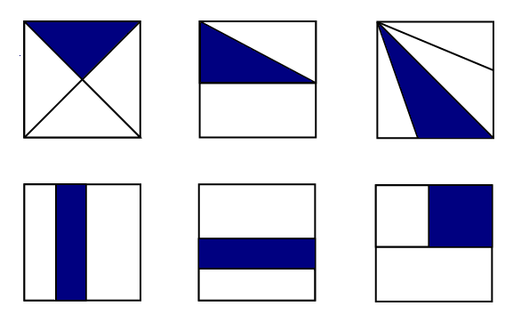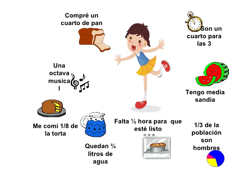 las fracciones...Versión en línea Encontraremos diferentes temas relacionados con los números fraccionarios...diviertete por Mercedes del Rosario Arteaga Pantoja 1 una fracción es a Es la representación numérica de una situación en la cual cada unidad se ha dividido en un numero de partes iguales, y de estas partes se ha tomado cierta cantidad. b Es la representación numérica de una situación en la cual cada unidad se ha dividido en un numero de partes desiguales, y de estas partes se ha tomado cierta cantidad. c Es la representación numérica de una situación en la cual cada unidad se ha dividido en dos partes iguales, y de estas partes se ha tomado cierta cantidad. d Es la representación numérica de una situación en la cual cada unidad se ha dividido en siete partes iguales, y de estas partes se ha tomado cierta cantidad. 2 Observa el vídeo con mucha atención, luego responde: 2/8 es igual a a 4/4 b 4/6 c 1/4 d 2/4 3 La fracción correcta de la unidad coloreada es: a 3/4 b 7/6 c 3/8 d 4/8 4 Según la imagen fracciones equivalentes son: a tienen el mismo valor aunque parecen diferentes b tienen diferente valor y parecen iguales c tienen diferente valor y parecen diferente d tienen diferente valor y diferente imagen 5 Para sumar fracciones homogéneas se debe a Sumar en cruz y escribir el mismo denominador b Sumar en forma diagonal y ultiplicar los numeradores c Sumar los numeradores entre si y escribir el mismo denominador d multiplicar en cruz 6 Según la imagen la suma de las fracciones coloreadas es: a cinco sextos b cinco tercios c cinco cuartos d cinco septimos 7 Las unidades de color azul están divididas en, respectivamente: a quintos y Medios b Tercios y Octavos c Tercios y Sextos d Cuartos y Octavos 8 En las siguientes imágenes la parte coloreada representa: a 1/8 b 2/8 c 3/4 d 1/4 9 Para restar fracciones heterogeneas se a Se resta en cruz b Se restan los numeradores y los denominadores entre si c Se restan los numeradores y se deja el mismo denominador d Se multiplica en cruz 10 En una caja había 20 chocolates y María cogió cinco. ¿Qué fracción tomó? a 1/2 un medio b 1/4 un cuarto c 1/6 un sexto d 1/5 un quinto 11 observa las imágenes y luego responde: de la jarra de agua se tomó a 1/7 b 1/5 c 1/6 d 1/4 12 Ana María gasta 3/4 de hora en recorrer 10 Km, mientras que Juan emplea 2/3 de ese tiempo. ¿Cuánto tiempo utiliza cada uno? a 45 y 15 minutos respectivamente b 30 y 35 minutos repectivament c 50 y 55 minutos respectivamente d 35 y 40 minutos respectivamente 13 Mariana quiere repartir 3/4 de litro de leche en vasitos de 1/8 . ¿Cuántos vasitoss podrá llenar ? a 5 vasitos b 7 vasitos c 6 vasitos d 4 vasitos 14 Para simplificar una fracción se debe a Dividir b Sumar c Restar d Multiplicar 15 En una sastrería se utilizo 1/3 de un corte de paño para un pantalón y 2/5 para una chaqueta ¿Cuánto paño se utilizó en total? a 5/7 de un corte de paño b 4/5 de un corte de paño c 7/5 de un corte de paño d 6/7 de un corte de paño Explicación 13 Recuerda que para dividir una fracción entre otra fracción se multiplica en cruz, luego si es posible se simplifica. 15 Para sumar fracciones heterogéneas, en el numerador se multiplica primer l numerador por el segundo denominador más el primer denominador por el segundo numerador y los denominadores entre si ... luego si es posible se simplifica