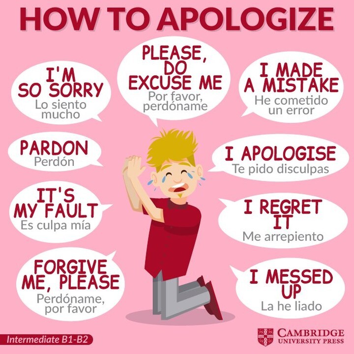 Por otro lado, las expresiones para "dar disculpas" o "aceptar disculpas" se utilizan para responder positivamente cuando alguien se disculpa. Indican que no se guarda rencor, que se comprende la situación, o que el problema está resuelto.