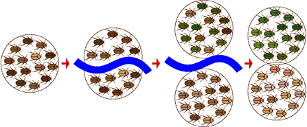La especiación y sus tiposVersión en línea Actividad evaluativa por Juan Carlos Perea 1 Los tipos o clases de especiación son: a Variabilidad, Simpátrica, parapátrica y alopátrica. b Alopátrica, peripátrica, parapátrica y simpátrica. c Genética, alopátrica, Peripátrica, parpátrica y simpatrica. d Evolución, variabilidad, mutación y selección natural. 2 ¿Al grupo de organismos capaces de reproducirse entre sí y producir descendencia fértil, se les llama? Escoge una o varias respuestas a Individuo b Comunidad c Especie d Hábitat 3 Esta especiación es la clase de especiación en el que se forma una nueva especie a partir de una población periférica aislada; cuando las moscas se van en el banano para otra región por la compra de este. a Peripátrica b Parapátrica c Simpátrica d Alopátrica 4 Así se le llama al conjunto de poblaciones biológicas que conviven en un mismo territorio: a Individuo b Población c Comunidad biológica d Ecosistema 5 El tipo o clase de especiación que es causada básicamente por la presencia de una barrera geográfica que impide el flujo genético entre poblaciones, es a Alopátrica b Simpátrica c Peripátrica d Parapátrica 6 Esta es la especiación en la que la producción de poblaciones reproductivamente aisladas se forman de una especie sin que se establezca previamente una barrera geográfica entre poblaciones. a Alopátrica b Peripátrica c Parapátrica d Simpátrica 7 Es aquel que se define como un organismo (unicelular o pluricelular) capaz de existir por sí mismo en un ambiente determinado. a Población biológica b Individuo biológico c Comunidad biológica d Ecosistema 8 La especiación que presenta aislamiento reproductivo en poblaciones cuya área geográfica tiene distribución continua en el espacio, su flujo genético es modesto, origina divergencia y aislamiento reproductivo, ¿es? a Parapátrica b Alopátrica c Peripátrica d Simpátrica 9 En este proceso se generan más especies a partir de una especie inicial, lo cual ocurre cuando se presentan ramificaciones en los árboles genéticos de los organismos, generándose nuevas especies a partir de una inicial a Mutación b Genética c Especiación d Selección natural 10 Así es llamado el grupo de comunidades que se interrelacionan en un área geográfica con los elementos considerados “sin vida” (factores bióticos y abióticos), como las rocas, el agua, el aire, etc. a Individuo b Población c Comunidad d Ecosistema 11 ¿A los grupos de individuos de la misma especie que se encuentran en un lugar o espacio determinado , se les llama? a Población b Especie c Individuo u organismo d Comunidad