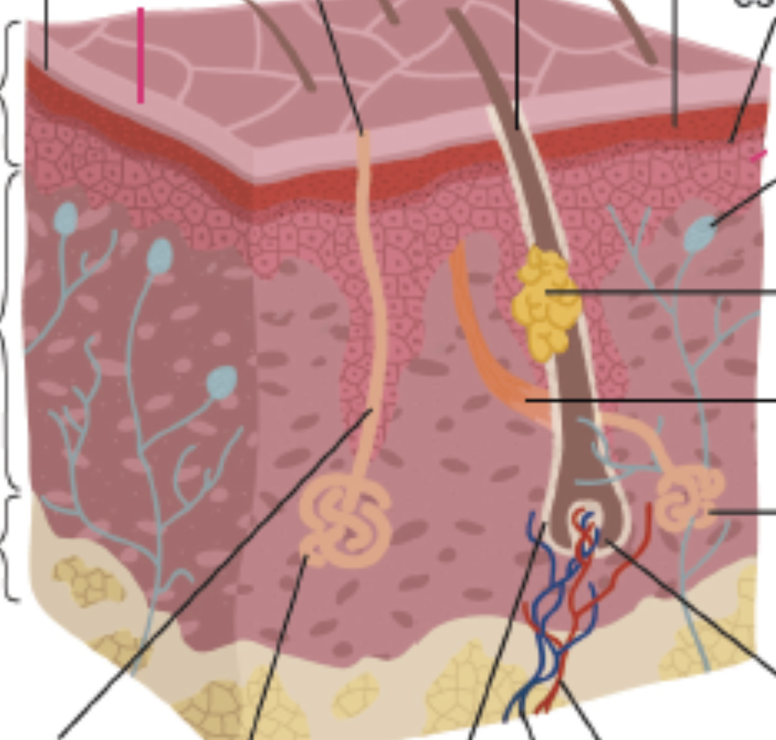 Parts PellVersión en línea Identifica les parts de la pell por SANDRA MELENDEZ ASENSIO 1 epidermis 2 Dermis 3 Hipodermis 4 Glàndula sudoripera ecrina 5 Glàndula sebàcia 6 Glàndula sudoripera apocrina 7 Corpuscle Meissner 8 Bulb cabell
