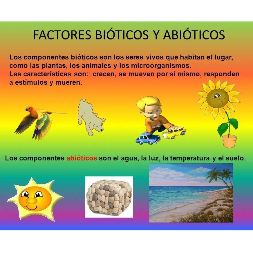 Seres Bióticos y AbióticosVersión en línea En este juego, tendrás que identificar si los elementos presentados son seres bióticos (organismos vivos) o seres abióticos (factores no vivos). Responde con ✅ si es un ser biótico y con ❌ si es un ser abiótico. por OLAYA ERIKA DALIBETH DEL HIERRO 1 ¿Los animales que se alimentan de plantas son considerados productores? Sí No 2 ¿Los hongos son ejemplos de descomponedores? Sí No 3 ¿La luz es un factor abiótico que influye en la fotosíntesis de las plantas? Sí No 4 ¿El agua es un factor abiótico importante para la vida de todos los seres vivos? Sí No 5 ¿La temperatura no tiene efecto sobre la supervivencia de los organismos? Sí No 6 ¿Las plantas son ejemplos de consumidores en un ecosistema? Sí No 7 ¿Los seres bióticos son organismos vivos? Sí No 8 ¿El tipo de suelo en un ecosistema no afecta a las plantas que crecen en él? Sí No