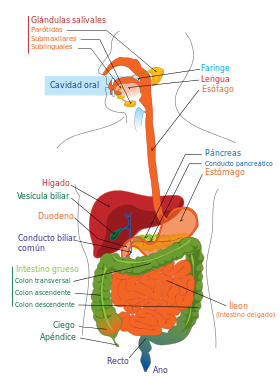 Digestion en el hombreVersión en línea Es ser humano tiene un sistema digestivo para poder realizar los procesos de digestion por Edyth Mirian Arroyo Alvarez Arroyo Alvarez 1 forma parte del sistema digestivo a El corazón b Los pulmones c El estómago 2 La ingestión se realiza en el órgano llamado a intestino b boca c higado d bilis 3 Los alimentos que se maztican y en saliban se convierten en una masa llamada a bolo alimenticio b mezcla c quimo d quilo 4 la faringe permite comunicar a estómago con higado b intestinos y estómago c riñón e higado d boca y estómago 5 el tubo que comunica la faringe con el estómago es a faringe b esofago c estómago d ninguna de las anteriores 6 en el estómago se transforma el bolo alimenticio en una sustancia llamada a quilo b saliba c quimo d sudor 7 El intestino delgado mide aproximadamente a 1.3cm b 7m c 2m d 1m 8 El quilo es absorvido a través de a Las vellosidades intestinales b El esófago c el higado d paredes del estómago 9 Las sustancias que no le sirven al cuerpo son expulsadas por a Glándulas lagrimales b las amigdalas c el ano d ninguna de las anteriores 10 en el sistema digestivo de dan los procesos de a reproducción b respiración c circulación d digestión Explicación 1 órganos que conforman es sistema digestivo: boca. faringe, esófago estómago, intestinos, ano 2 en la boca se forma el bolo alimenticio 3 las glándulas salíbales segregan saliba 4 la faringe es un tubo que permite comunicar la boca con el estómago 5 el esófago permite el paso del bolo alimenticio al estómago 6 El Quimo es una masa pastosa compuesta por los alimentos digeridos, es decir, el bolo alimenticio 7 el intestino delgado es mas delgado y largo que el intestino grueso 8 https://youtu.be/7eWoG3yUeds 9 estas sustancias comun mente les lamamos hece fecales 10 el conjunto de estos órganos permite realizar la digestion