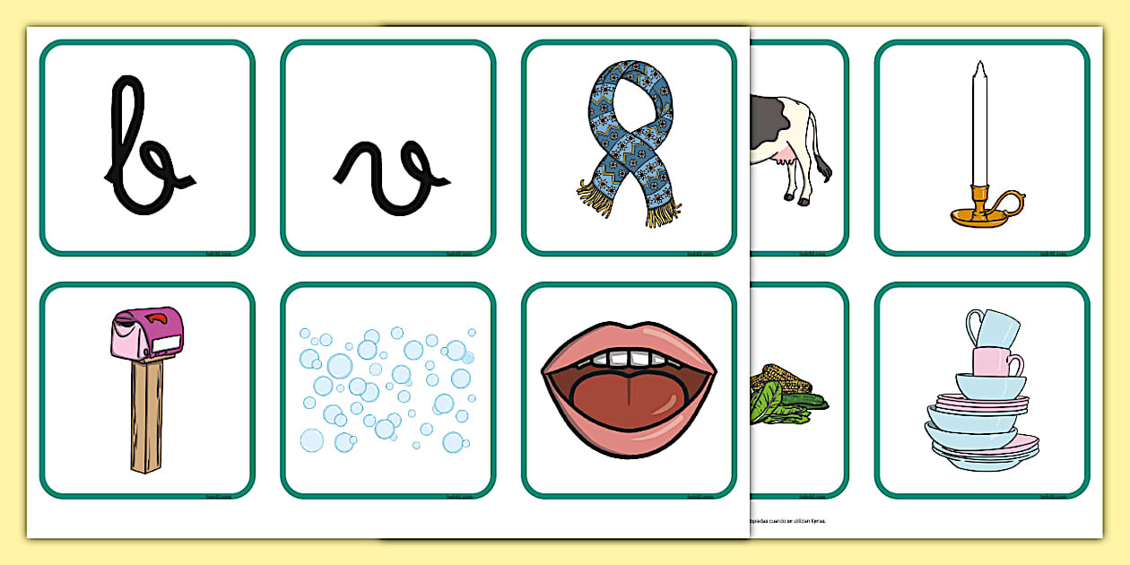 Uso de la b y la vVersión en línea Escribir la palabra que corresponda según la imágen usando b o v. por Lucía Rebeca Calle Fernández 1 Use la b o la v según corresponda. 2 Use la b o la v de manera correcta. 3 Use la v o la b de manera correcta 4 Use la v o la b de manera corrrecta 5 Use la b o la v de manera correcta 6 Use la b o la v de manera correcta 7 Use la b o la v de manera correcta 8 Use la b o la v de manera correcta 9 Escriba un apalabra con b 10 Escriba una palabra con v. Explicación 1 bacterias 2 buzón 3 boca 4 bufanda 5 vaca 6 vela 7 vajilla 8 veneno 9 bondad. 10 clavo.