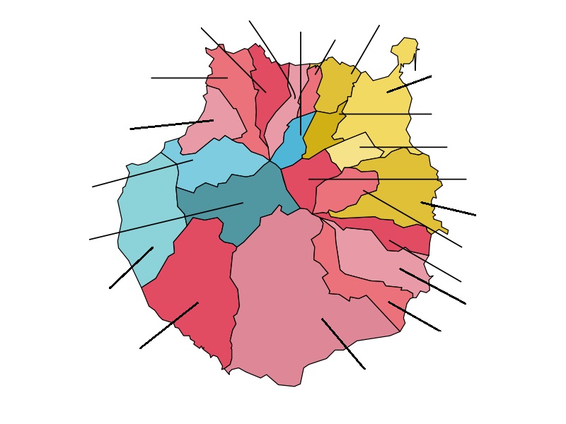 Municipios de Gran CanariaVersión en línea Descubre e identifica los municipios de Gran Canaria por Helena N. G. 1 Las Palmas de Gran Canaria 2 Teror 3 Santa Brígida 4 Vega de San Mateo 5 Telde 6 Valsequillo de Gran Canaria 7 Ingenio 8 Agüimes 9 Santa Lucía de Tirajana 10 San Bartolomé de Tirajana 11 Mogán 12 La Aldea de San Nicolás 13 Tejeda 14 Artenara 15 Agaete 16 Gáldar 17 Santa María de Guía 18 Moya 19 Valleseco 20 Firgas 21 Arucas