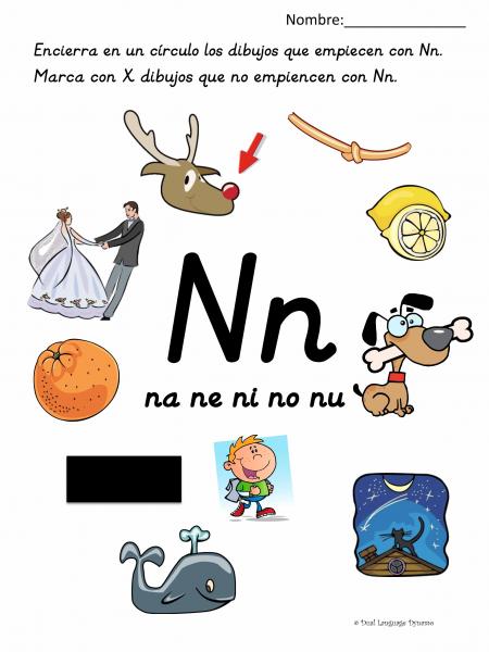Identifica las imágenes con la letra N,nVersión en línea Identifica y da clic a las imágenes que inicien con las letras m, s, t, p, n por Karina Juarez Ortiz 1 Nariz 2 Noche 3 Niño 4 Negro 5 nudo