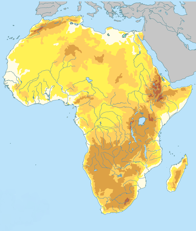 Mapa físico de ÁfricaVersión en línea Localiza en el mapa las principales unidades del relieve africano por Mónica Gallego Vicente 1 Océano Atlántico 2 Océano Índico 3 Mar Mediterráneo 4 Mar Rojo 5 Lago Victoria 6 Lago Chad 7 Lago Tanganica 8 Lago Malawi 9 Golfo de Guinea 10 Cabo de Buena Esperanza 11 Estrecho de Gibraltar 12 Canal de Suez 13 Cordillera del Atlas (Toubkal) 14 Montes Drakensberg 15 Gran Valle del Rift 16 Kilimanjaro 17 Macizo Etíope 18 Macizo Aldamaoua 19 Península de Somalia 20 Desierto del Sáhara 21 Desierto de Libia 22 Desierto de Namib 23 Desierto del Kalahari 24 Nilo 25 Niger 26 Congo 27 Orange 28 Zambeze 29 Madagascar 30 Islas Canarias