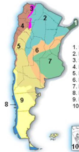 BIOMAS DE ARGENTINAVersión en línea localizar los distintos biomas de Argentina por lorena calderon 1 Bosque andino patagónico 2 estepa patagónica 3 Espinal 4 Selva misionera 5 Monte 6 Desierto andino 7 pastizal pampeano 8 Bosque chaqueño 9 selva tucumano-salteña