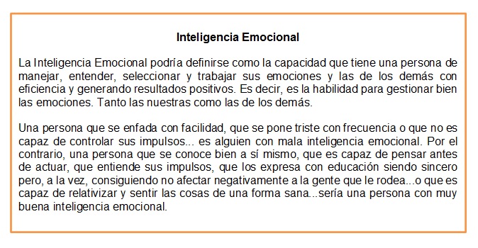 Emprendimiento Evaluación 1 Versión en línea Evaluació primer periodo emprendimiento Septimo por Deisy Medina Giraldo 1 El Neocortex se encarga en el cerebro del razonamiento. Según el texto determina cual de estas acciones se realiza a partir del Neocortex a Sobrevivir a un naufragio b Realizar un examen de matematicas c Amar a tu mascota d Pintar un cuadro 2 Camila acaba de perder a su mascota, y se encuenra destrozada. Según la imagen determina con cual de los tres cerebros esta actuando. a Neocortex b Límbico c Reptiliano d Derecho 3 Wilson acaba de Naufragar en una isla. De acuerdo con la información de la imagen determina gracias a cual de los tres cerebros podría llegar a sobrevivir. a Límbico b Reptiliano c Izquierdo d Neocortex 4 Las zonas derecha e izquierda de nuestro cerebro tienen definidas ciertas tareas como podemos ver en la imagen. Según las imágenes podemos argumentar que un pintor tiene desarrollado cual de los dos emisferios de su cerebro. a Izquierda b Reptiliano c Derecha d Neocortex 5 Cada minuto nuestro cerebro esta produciendo pensamientos, muchos de ellos condicionados por nuestras creencias (impulsadoras o limitantes), sin que nos demos cuenta se convierte en la comunicación más poderosa que tenemos día a día. Según el texto podemos argumentar que a Si pensamos de manera negativa durante todo el día nuestro cerebro termina por programarse de manera negativa. b Los pensamientos no son importantes por que son solo pensamientos y no influyen en el actuar. c Pensar solo empeora la situación en la cual nos encontremos. d Las personas que no piensan en las consecuencias no actúan de manera concreta. 6 Educarse de manera tradicional produce resultados extraordinarios SI Y SOLO SI, trabajas primero en tu ser, en tus habilidades de pensamiento , de control de las emociones y de desarrollo de una actitud positiva en toda circunstancia. Una manera de trabajar en el control de las emociones es a Actuar antes de pensar sin importar las consecuencias b Comprar una formula mágica que permite mejorar el genio c Evaluar la situación antes de actuar y tomar la mejor decisión d Pensar solo empeora la situación 7 La comunicación efectiva, es aquella donde el receptor y el emisor entienden el mensaje. De acuerdo a esta información determina en cual de estas situaciones huvo comunicación efectiva. a La mama de Juanito le pide que traiga 5 huevos de la tienda y el trae 6 b Carlos realiza 8 de los 10 puntos que le pide el profesor en el examen c Camila compra los tres espejos que le encarga Diana d Sandra se sube en el bus 059 no en el 057 que le indico Andrés 8 En la imagen el mensaje es a El Colgate Plax es azul b El mal aliento se puede remediar con Colgate Plax c A las hormigas les gusta el dulce d No hay un mensaje claro 9 La imagen esta haciendo publicidad a a Una marca de papas b Una marca de platos c Una marca de mayonesa d Una linea de cuchillos 10 Según el texto podemos argumentar que a Todos tenemos inteligencia emocional b La inteligencia emocional permite el manejo de los sentimientos c No existe la inteligencia emocional d La lectura de las emociones es sencilla y clara