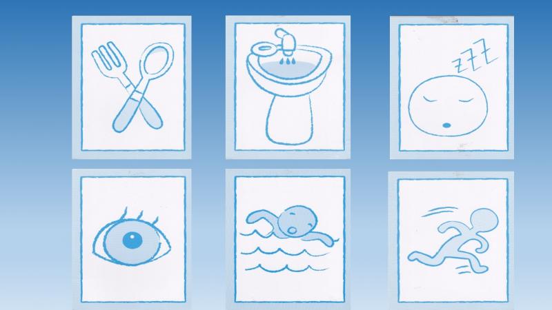 Pictogramas 2Versión en línea Selecciona los pictogramas que se te indican. por Carolina Sanama 1 Comer 2 Lavar 3 Dormir 4 Ver 5 Nadar 6 Correr
