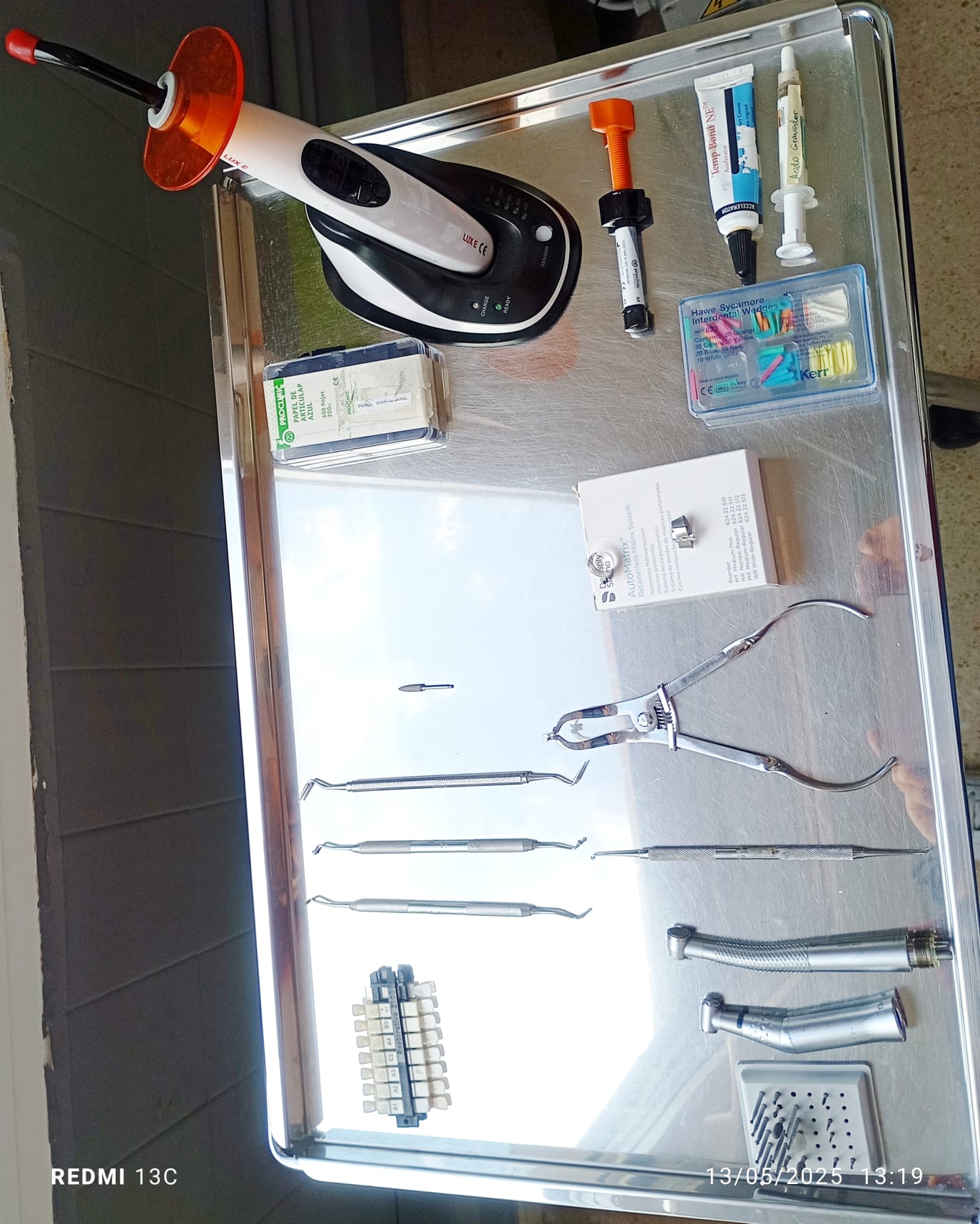 Bandeja de OBTURACIÓN de compositeVersión en línea Tratamiento para reparar dientes dañados por caries o fracturas. Se elimina la parte del diente afectada y se rellena el espacio para restaurar la función y la estructura del diente por Arima 1 1.Bandeja de exploración 2 2.Bandeja de anestesia 3 3.Bandeja de aislamiento 4 Turbina, contraángulo y fresas 5 Cucharilla de Black 6 4.Bandeja de matrices 7 Ácido ortofosfórico al 37% 8 Adhesivo dentario y aplicador 9 Composite 10 Lámpara fotopolimerizadora 11 Guía de colores 12 Instrumental plástico (instrumento de espátula) 13 Condensadores (Bruñidor de bola) 14 Talladores (Tallador de Hollenback) 15 Instrumental de pulido del composite 16 5.Pinza Miller 17 Papel de articular Explicación 5 Puede cortar